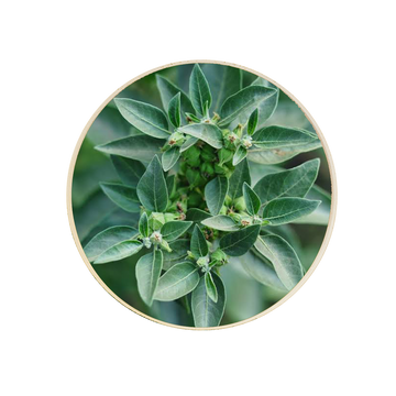 La Ashwagandha es conocida por sus propiedades adaptógenas, ayudando a disminuir los niveles de cortisol y aliviar el estrés y la ansiedad.