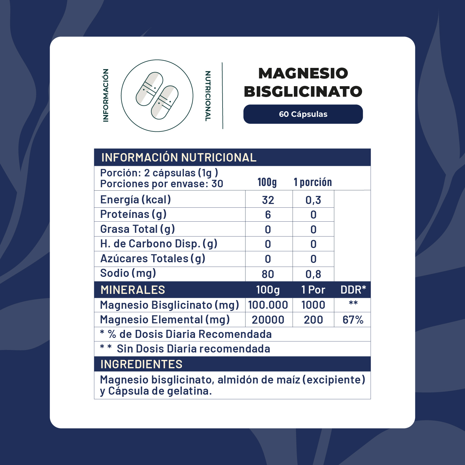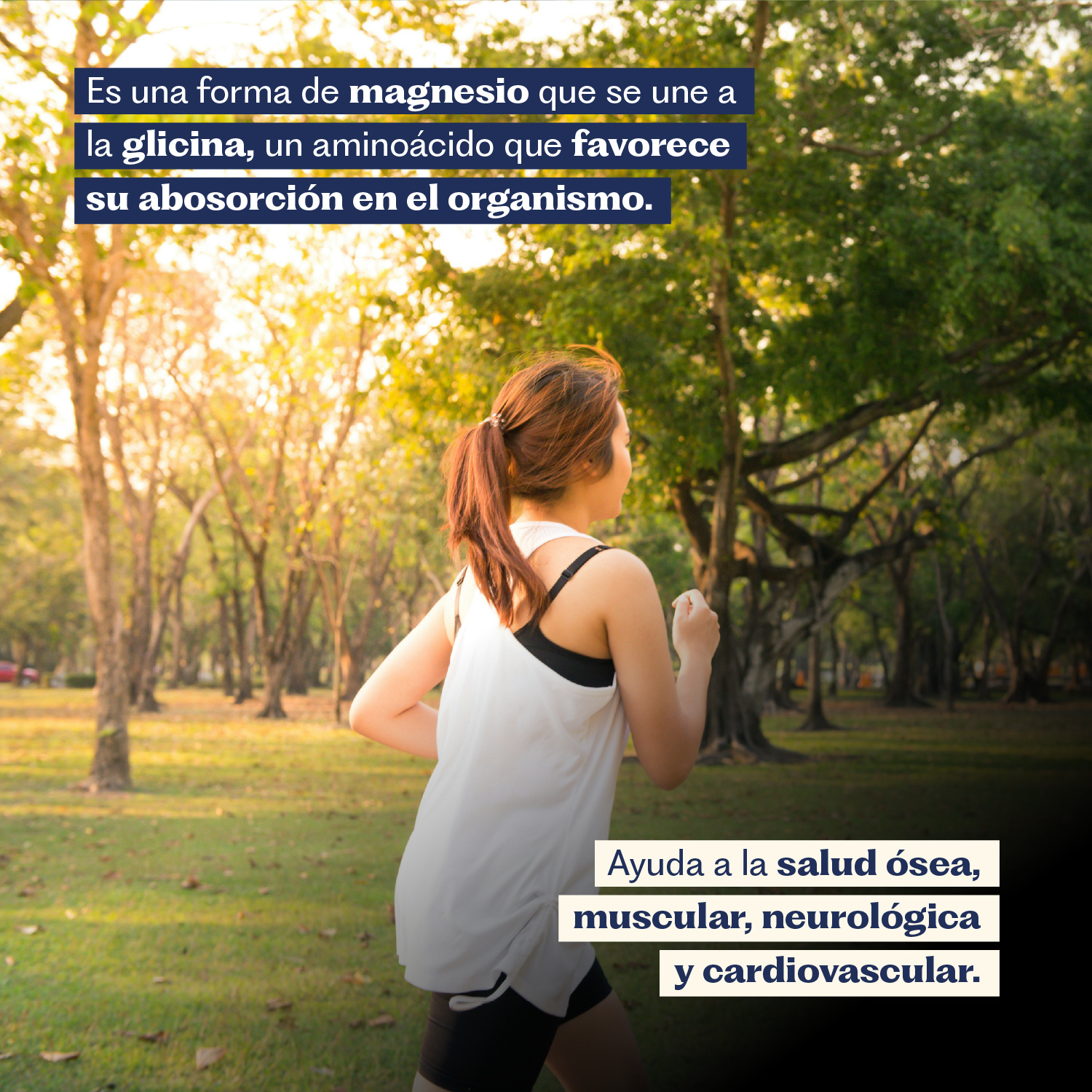 Unido al aminoácido glicina, lo que facilita su absorción y suavidad gastrointestinal. Aporta al bienestar muscular, al descanso y a la relajación, siendo ideal para quienes buscan un magnesio de alta tolerancia.