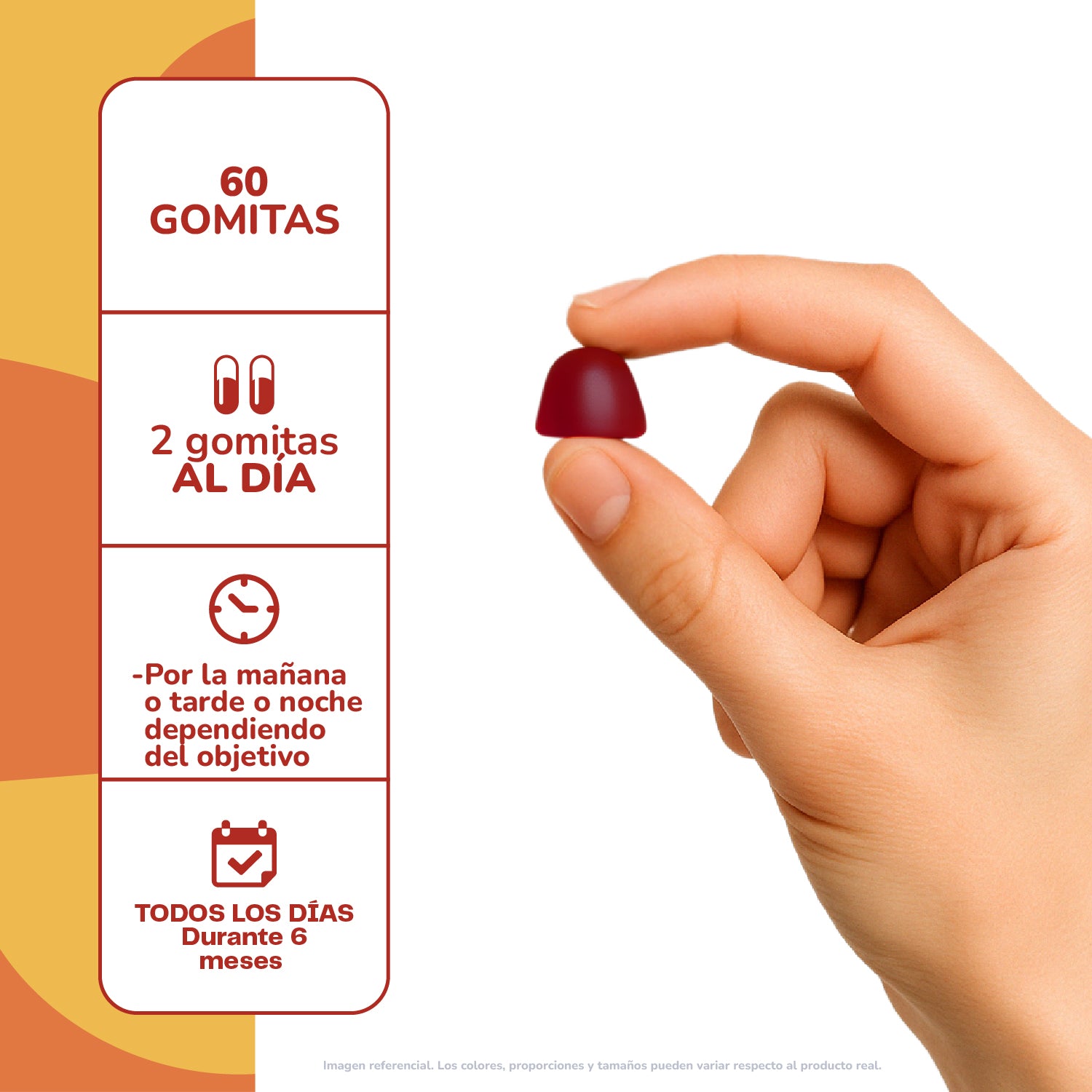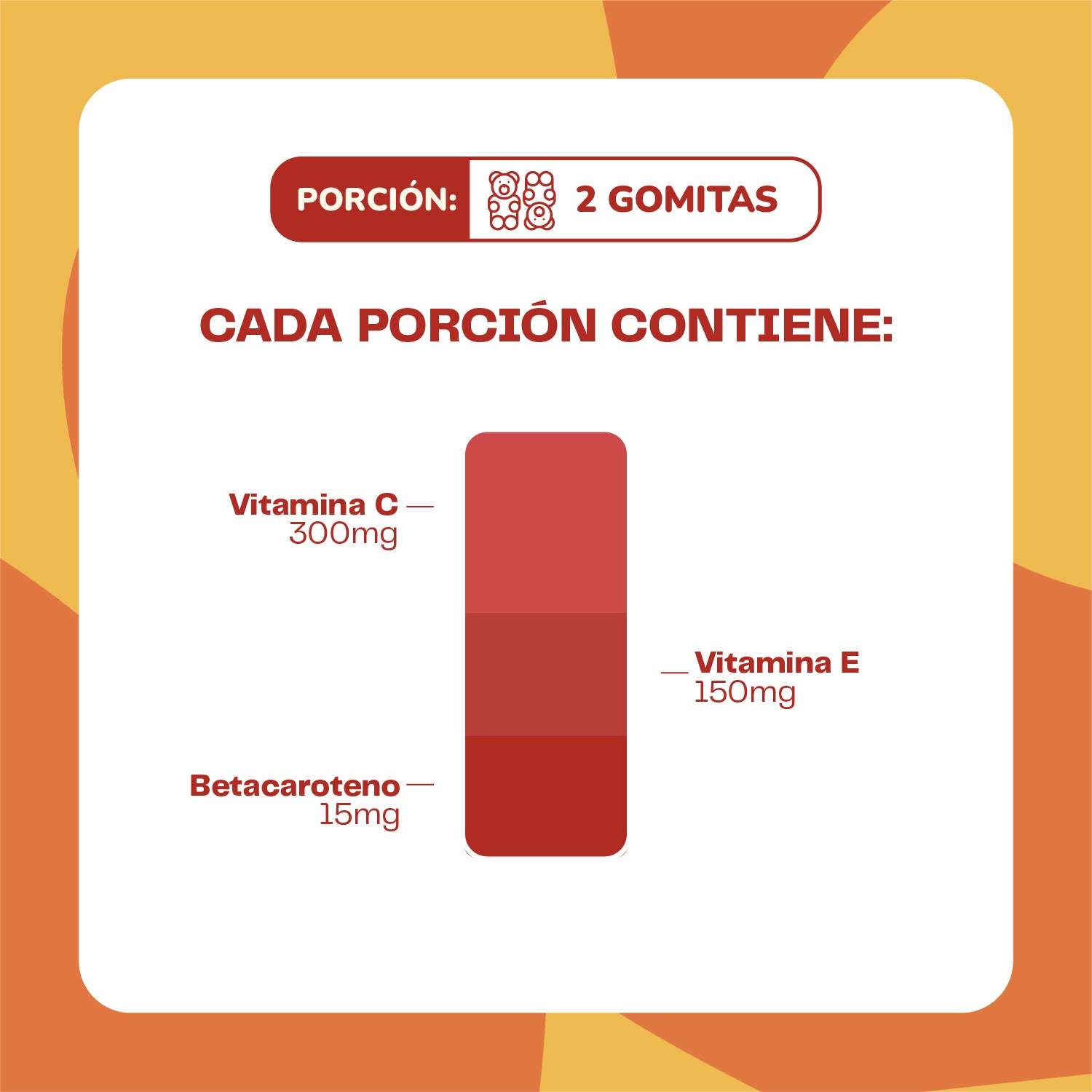 Formato en gomitas: Fácil de consumir, sin azúcar añadida y con agradable sabor frutal.