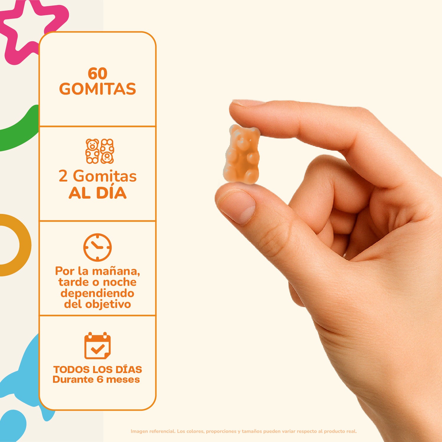 Consumir 2 gomitas al día, preferentemente junto con alguna comida.