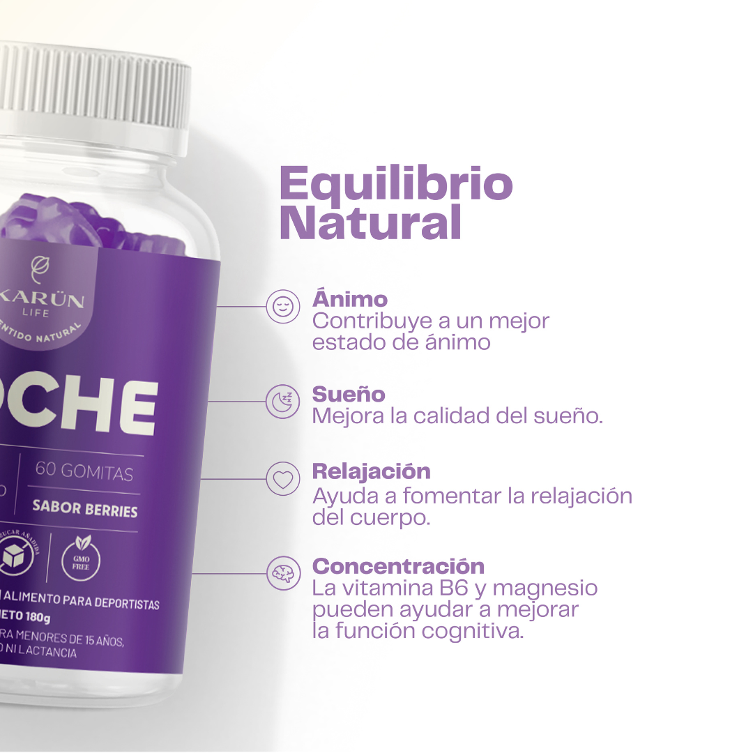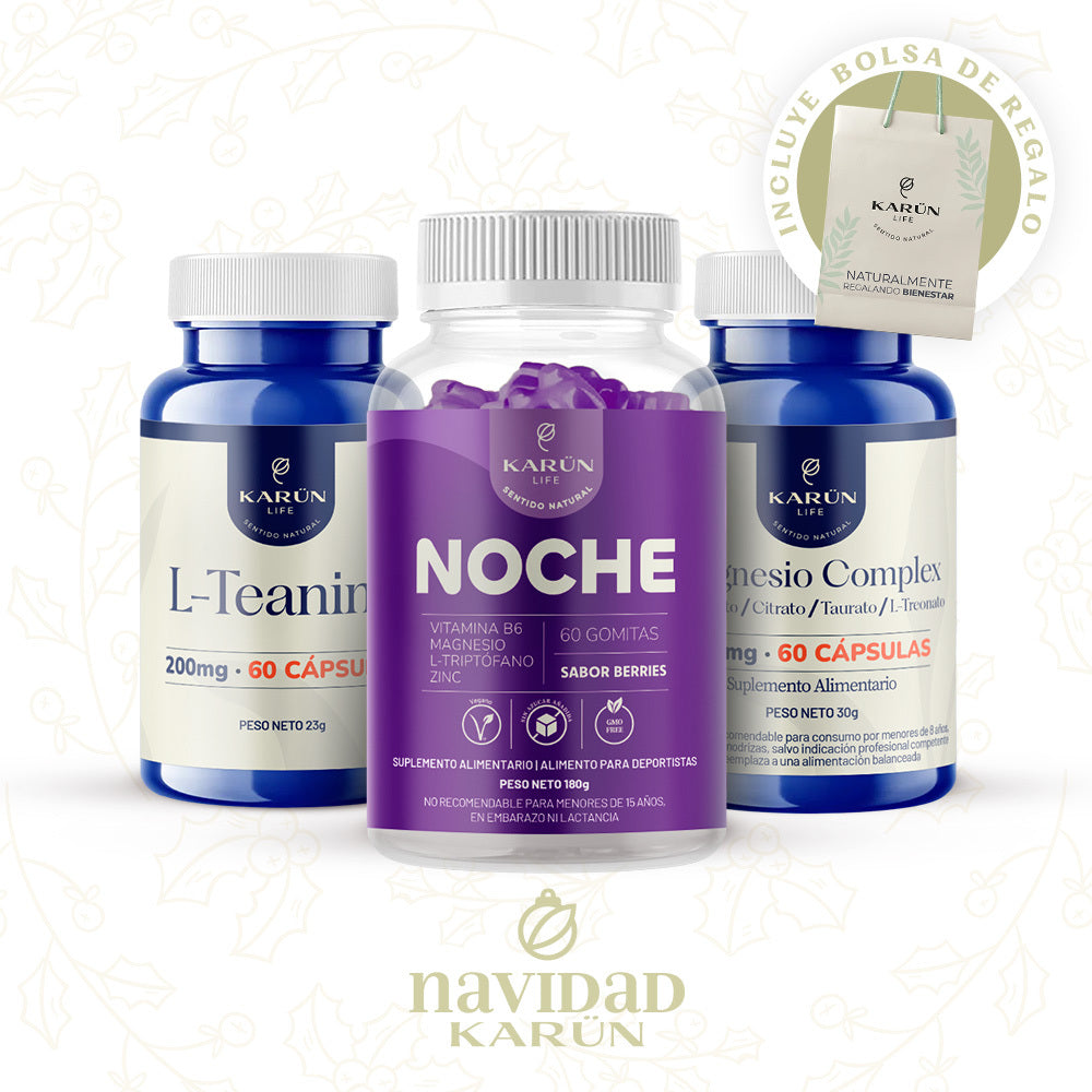 El Pack Karün Life Buen Dormir combina tres fórmulas diseñadas para favorecer una noche de descanso profundo, reducir el estrés y promover equilibrio emocional. Incluye Magnesio Complex, ideal para relajar el cuerpo y apoyar el sueño reparador; L-Teanina, que ayuda a calmar la mente sin causar somnolencia; y Gomitas Dreams, que aportan L-Triptófano, Magnesio y vitamina B6 para apoyar la calidad del sueño y el bienestar nocturno.