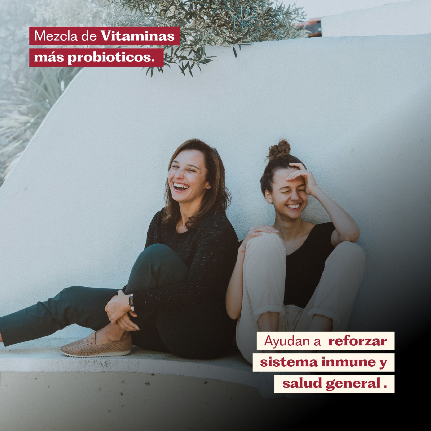 Gomitas Multivitamínico + Probióticos: Tomar 2 gomitas al día, preferentemente junto a una comida.