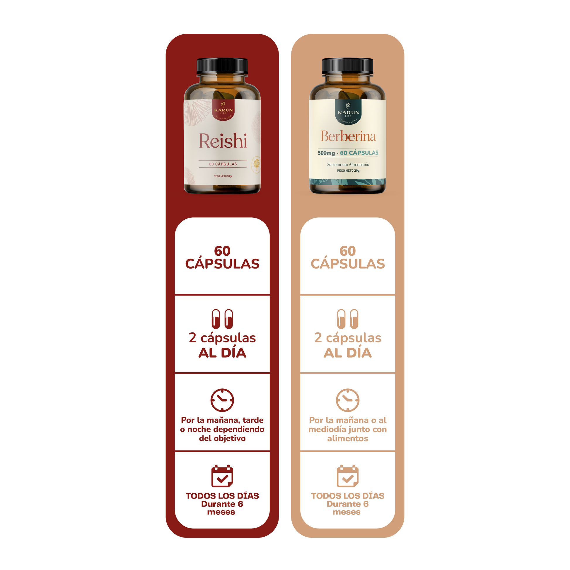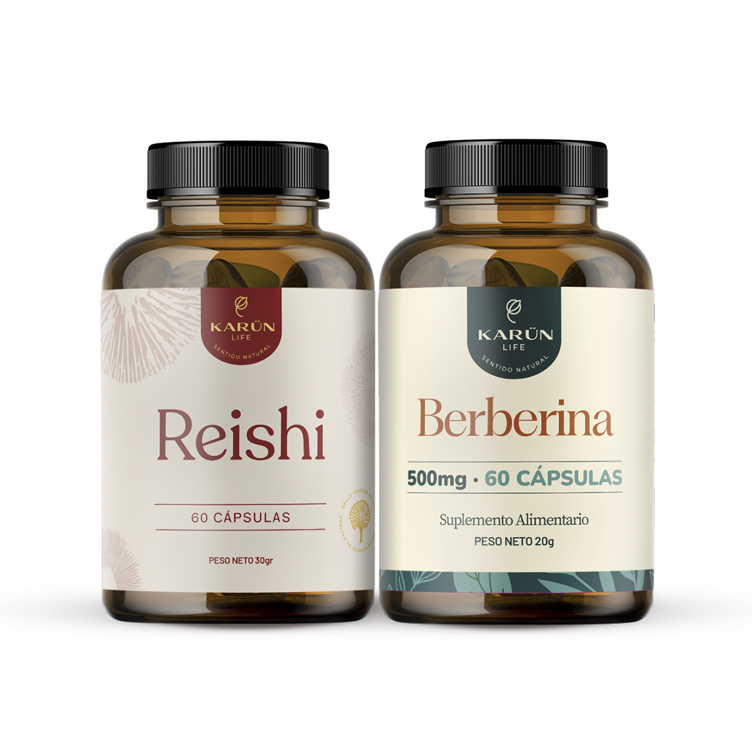 El Pack Equilibrio Profundo de Karun Life une dos fórmulas esenciales para apoyar el balance interno del organismo: Hongo Reishi, reconocido por su capacidad para equilibrar el sistema inmune y apoyar la respuesta del cuerpo frente al estrés, y Berberina, un extracto natural que contribuye al metabolismo saludable y al bienestar general. Juntos ofrecen un soporte integral para quienes buscan armonía física, energética y metabólica.