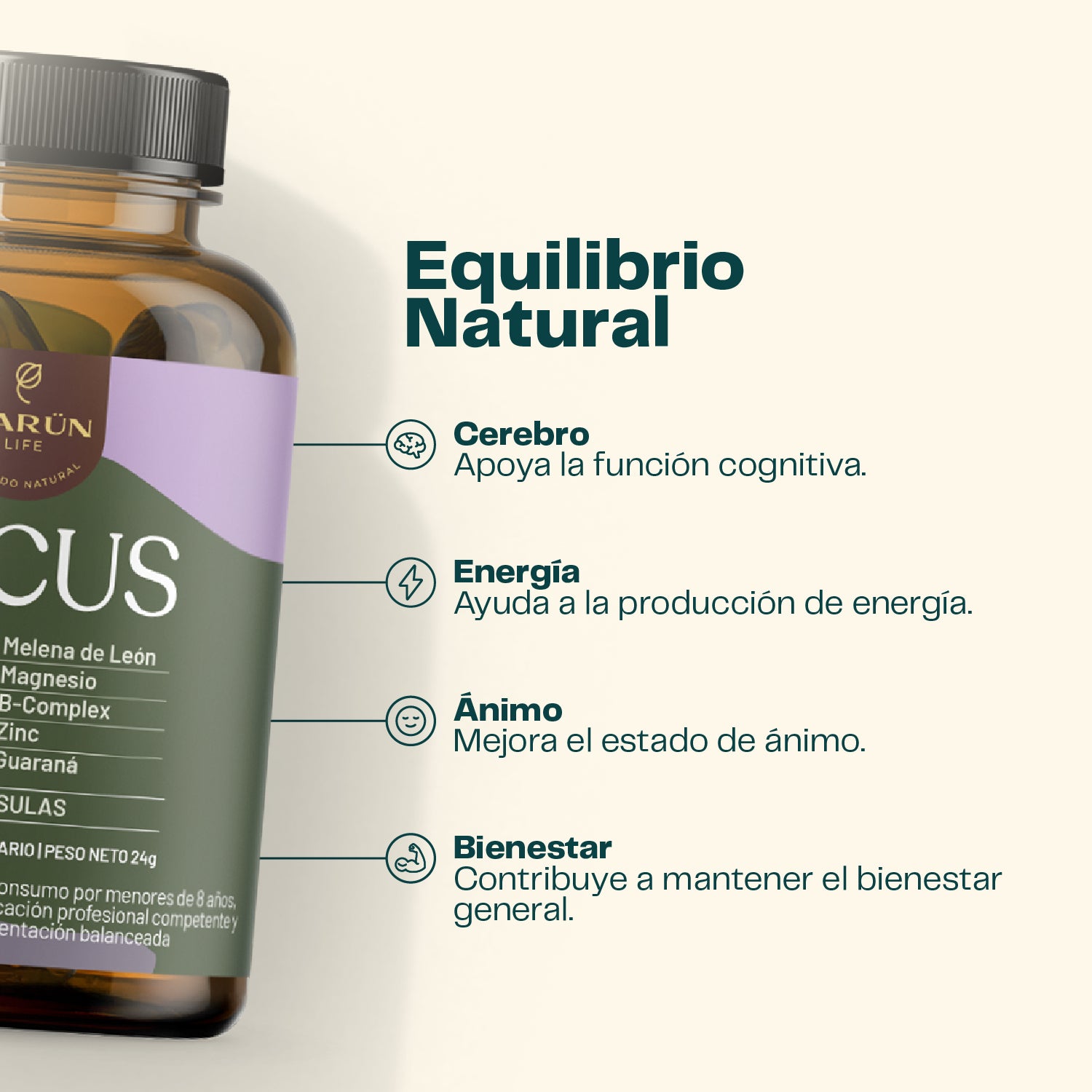 -Cápsulas Focus: 1 porción diaria equivalente a 2 cápsulas con abundante agua, preferentemente junto a una comida.