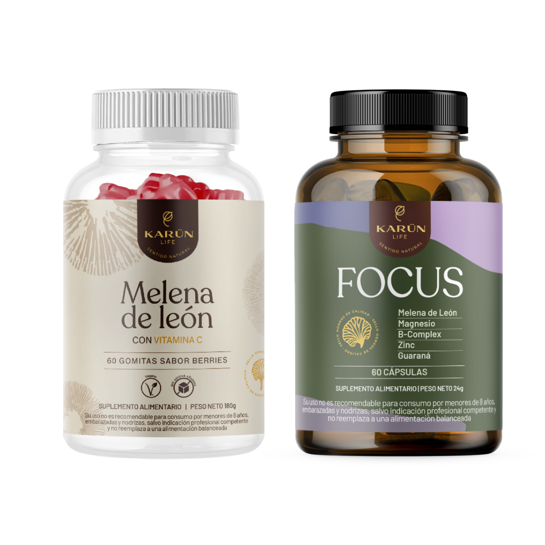 El Pack Melena de León en Gomitas + Focus combina dos fórmulas complementarias para apoyar la concentración, la memoria y el bienestar cognitivo de manera integral. Este pack une la practicidad y el sabor de las gomitas con la potencia de una fórmula en cápsulas de alta concentración, ideal para acompañar jornadas exigentes a nivel mental y físico.