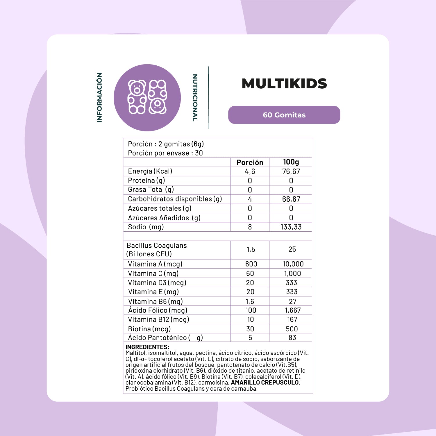 - 1 frasco de Multikids (60 gomitas – multivitamínico + probióticos)