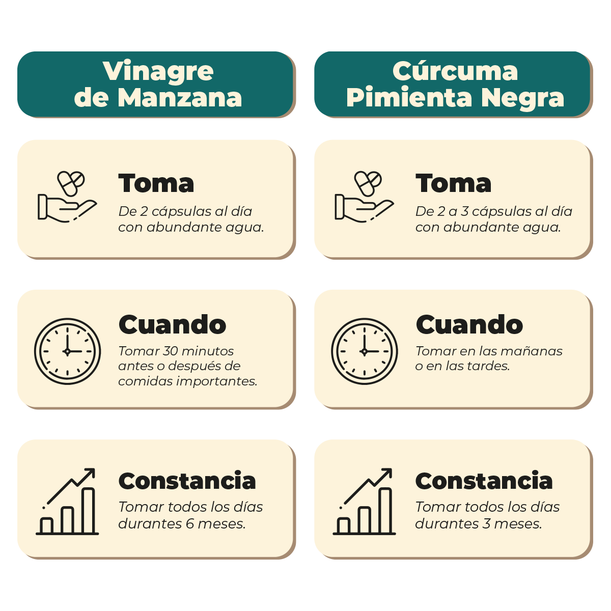 Pack Antiinflamatorio: Cúrcuma + Pimienta y Vinagre de Manzana 180 cap