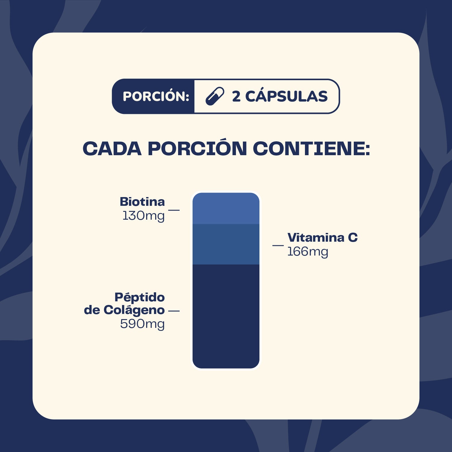 El colágeno aporta estructura a la piel, mientras que la biotina favorece el crecimiento y la resistencia del cabello y las uñas.*