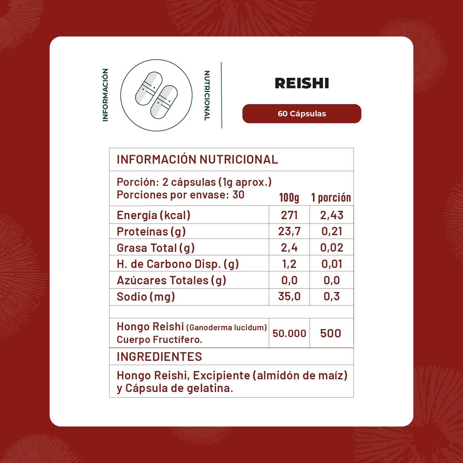 Reishi Hongo 500 Mg 60 Capsulas