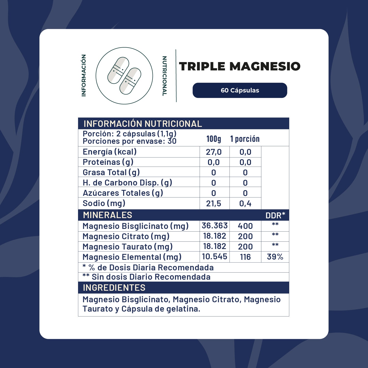 Triple Magnesio - Bisglicinato, Citrato y Taurato 400mg